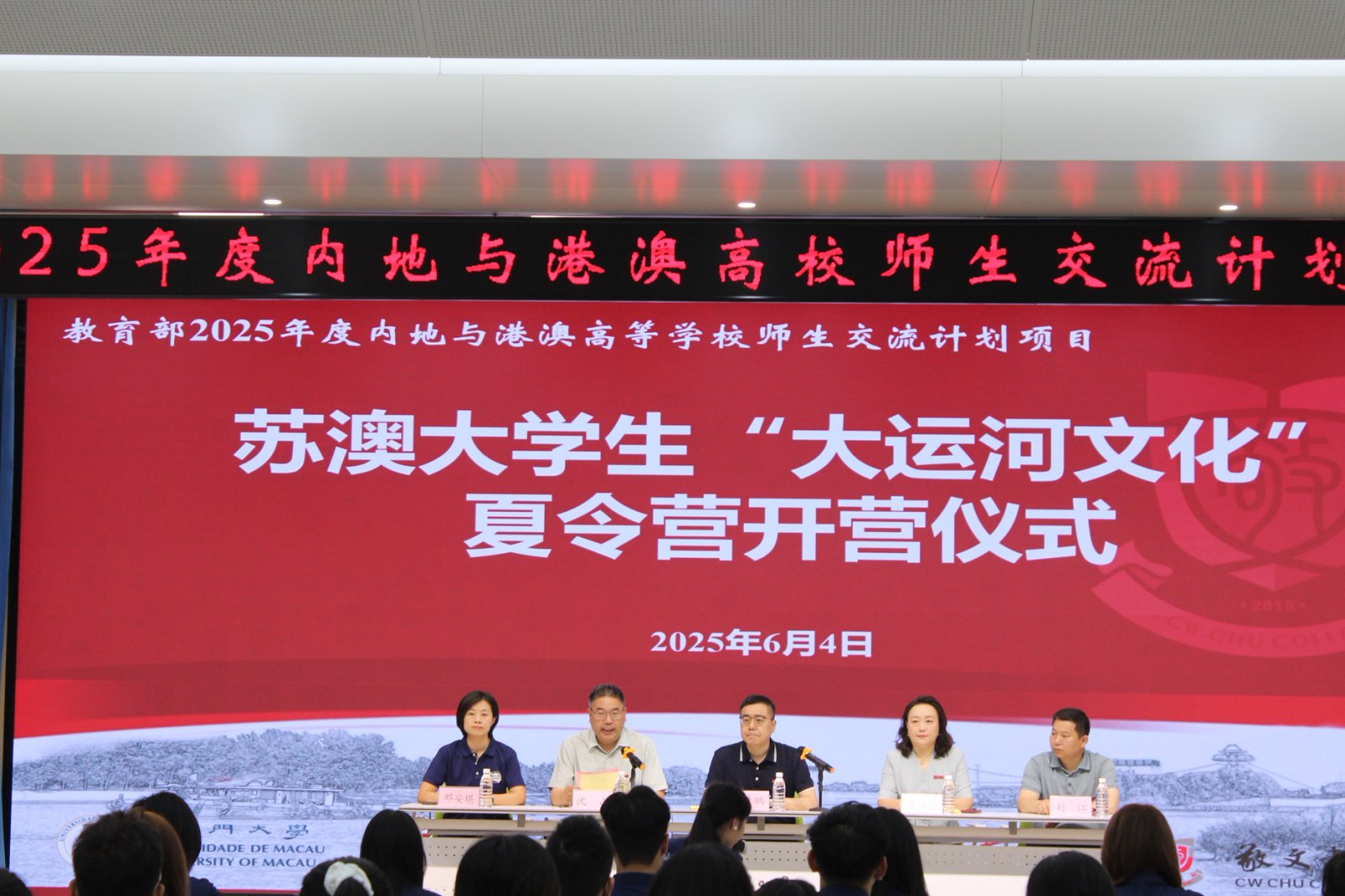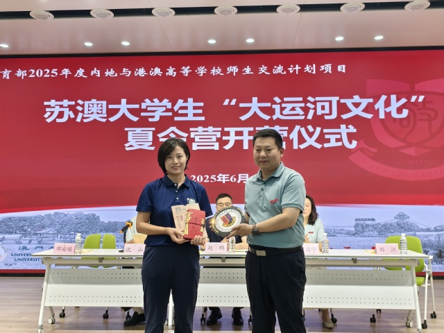 6月3日至10日,由学校港澳台事务办公室指导,敬文书院主办的教育部2025年度内地与港澳高校师生交流计划项目——苏澳大学生“大运河文化”夏令营圆满完成。6月4日上午的开营仪式上,赵鹏副校长出席并致辞。港澳台事务办公室主任、敬文书院师生代表与澳门大学张昆仑书院参营师生出席仪式,仪式由敬文书院院长沈山主持。赵鹏副校长为夏令营开幕致辞,他代表学校对来自澳门大学的老师和同学们表示热烈欢迎。他为与会师生介绍了我校的建校历史及敬文书院的办学特色,讲述大运河江苏段深厚的文化底蕴,希望澳门师生可以充分体验感受徐州、淮安、扬州和镇江四地大运河文化的魅力,领略中华文明的源远流长和中华民族的勤劳智慧,了解伟大祖国的发展成就。沈山院长介绍了世界遗产大运河的历史渊源及本次夏令营的活动安排。双方营员代表先后发言。敬文书院梁译文同学以生动的语言向在座师生讲述了大运河的历史与文化特色,期望与澳门师生在实践中共同领悟文化魅力,收获同伴友谊,留下一段独特的美好记忆;澳门大学张昆仑书院的博士生李锦龙同学表达了对本次夏令营活动的期待,希望以大运河文化为枢纽增强苏澳两地学生之间的交流。随后,澳门大学张昆仑书院副院长邓安琪与书院刘江副院长互赠文创纪念品。港澳台事务办公室主任董海宁为夏令营授旗。体育学院和音乐学院学生带来武术表演和民族音乐。开营仪式后,沈山教授为夏令营开设了首场讲座《大运河的历史功能与现代价值》。营员们从户部山-回龙窝街区的古建筑群中解读运河历史密码,与非遗传承人面对面,体验徐州香包制作。次日,孟召宜教授开设讲座《运河城市徐州:汉文化名城的构建逻辑和实践路径》,组织研讨“我心中的汉文化与大运河文化”,并与营员们共赴新沂窑湾古镇,开展田野调查。离开徐州后,团队在淮安中国漕运博物馆的体会漕运的宏大叙事与精密运作。泛舟里运河,“壮丽东南第一州”的运河脉动直抵营员们心灵深处。在扬州中国大运河博物馆,恢弘的建筑与全景式展陈,沉浸式体验中华运河文明的波澜壮阔。在底蕴深厚的镇江博物馆,丰富的馆藏文物与详实的运河历史展陈,系统梳理了镇江作为重要漕运枢纽和渡口城市的千年发展脉络。行程结束后澳门大学同学纷纷感叹:“运河不再是地图上的线条,它因伙伴们共同的探索而有了温度与情感。”本次夏令营邀请了大运河文化领域的专家学者开设专题讲座,并组织开展实地考察徐州、淮安、扬州、镇江四地重要大运河文化遗产遗址等活动,以运河为轴,以文化为魂,以青年为主体,成功搭建了一座苏澳交流之桥。通过亲身体验与深度研学,让澳门大学的师生们充分感受到大运河文化的博大精深,进一步促进了澳门与江苏的教育文化交流融合,凝聚民族复兴的青春力量。(一审:李晨,二审:刘江,三审:沈山)