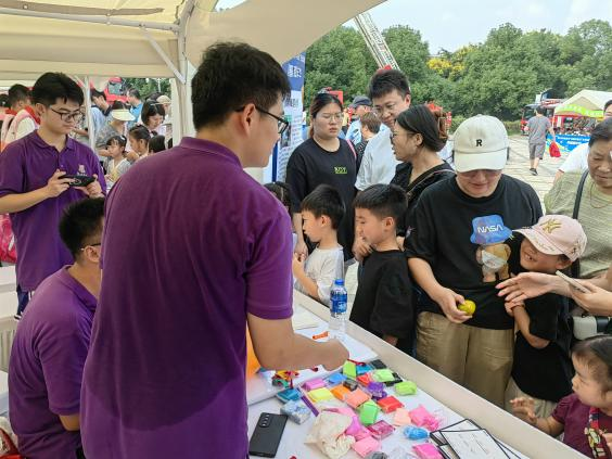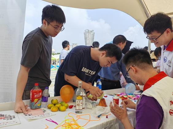 9月17日上午,敬文书院受邀参加由南京市科协、南京市委宣传部等多家单位主办的“全国科普日”主场活动暨科普嘉年华。此次科普活动邀请高校志愿服务组织15家。书院积极引导,认真策划,组建志愿团队前往南京开展科普宣传志愿服务活动,弘扬科创精神,传播科学知识。在活动中,团队成员致力于将理论与实践相结合,设计出多个观赏性与安全性兼具的科学小实验,“火山喷发”“气球竞速”“橘汁爆破”……精心准备、精彩纷呈的趣味科学实验吸引了众多市民驻足观看,团队成员在完成实验操作的同时,也不忘向观众特别是青少年观众解说实验所蕴含的科学知识,甚至邀请观众亲手完成实验,制作趣味装置,真正实现展演者同观众的零距离互动。科普施教,科创强国。书院高度重视科普宣传工作,立足主题教育,依托专业建设,聚焦科学教育,积极引导敬文学子勇担社会文化建设的重任,努力营造热爱科学、崇尚创新的社会氛围,用青春见证国家科技发展的日新月异,以科普实践书写中国未来壮阔绚烂的科学画卷。
