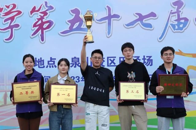 10月20日至21日,江苏师范大学成功举办第五十七届田径运动会。书院31名师生运动员、65位体育文化展示方阵同学、20位新媒工作者和后勤保障同学、100位现场观众共同参与。成绩斐然:荣获男女团体总分第一、女子团体第一、男子团体第三、精神文明奖、体育文化展示二等奖。书院在校田径运动会中也连续四年蝉联男女团体总分第一名,捧得“流动奖杯”。 校运动会的两天时间里,运动员们挑战自我、不断拼搏,在学男4×100米、学女4×100米、学女4×400米、学女1500m、学女400m、学女跳远等中斩获7枚金牌,最终共获得奖牌12枚,以191.5的总分遥遥领先,位列团体总分第一名,彰显了全体敬文书院师生团结奋进的运动豪情与积极向上的精神风貌,用实际行动诠释了“更快、更高、更强、更团结”的奥林匹克精神。 体育承载着国家强盛、民族振兴的梦想。敬文书院秉承“德育为先、智育为重、体育为基、美育为要、劳育为本”的教育理念,坚持五育并举,强化卓越和创新教育,实现知行合一。书院创新构建卓越人才“体育俱乐部”培养模式,推动阳光体育运动,指导体育社团发展,建设功能丰富的“一站式”学生社区,用系列措施鼓励学生充分利用课余时间强健体魄、陶冶情操,在实践中深化体育育人发展理念,不断提高敬文学子的素养与气质。希望敬文学子保持和发扬赛场上的坚韧不拔之志、顽强拼搏之风,在体育运动中享受乐趣、增强体质、健全人格、锤炼意志,为推动学校事业高质量发展贡献敬文力量!