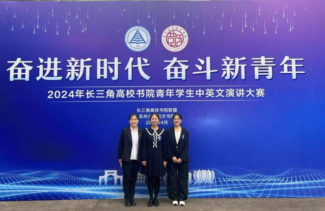 4月27日,敬文书院三名学生参加由长三角高校书院联盟主办、苏州大学敬文书院承办、苏州新东方国际教育支持的“奋进新时代 奋斗新青年”2024年长三角高校书院青年学生中英文演讲大赛。来自中国人民大学远见书院、华东师范大学孟宪承书院、华东政法大学文伯书院、南京大学匡亚明书院、苏州大学敬文书院、江苏师范大学敬文书院、苏州科技大学敬文书院、绍兴文理学院、南京审计大学泽园书院、上海科技大学科道书院等10所长三角高校书院联盟的22名选手参加大赛。在本次比赛中,参赛选手们围绕“奋进新时代,奋斗新青年”这一题,各抒己见,展现了对新时代的理解和对未来的展望。他们以饱满的热情、深刻的思考、精彩的表达,向我们展示了新时代青年的风采和活力。经过激烈角逐,书院成绩斐然,三位参赛选择均获奖励:22英师班张家馨同学获得英文组一等奖,22英师班高澈同学获得英文组三等奖;22汉师班巩子越同学获得中文组三等奖。